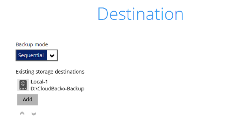 6. In the Destination menu, select a backup destination where the backup mail will be stored. Click the “+” icon next to Add new storage destination / destination pool.