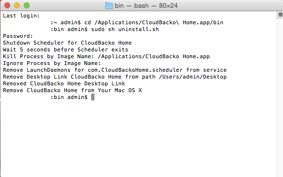 How to uninstall CloudBacko Pro, Lite or Home from Mac OSX