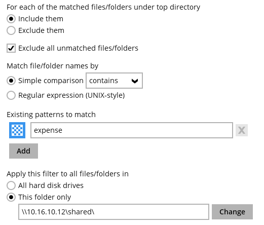 Appendix C - Filtering in network drives on Windows OS
