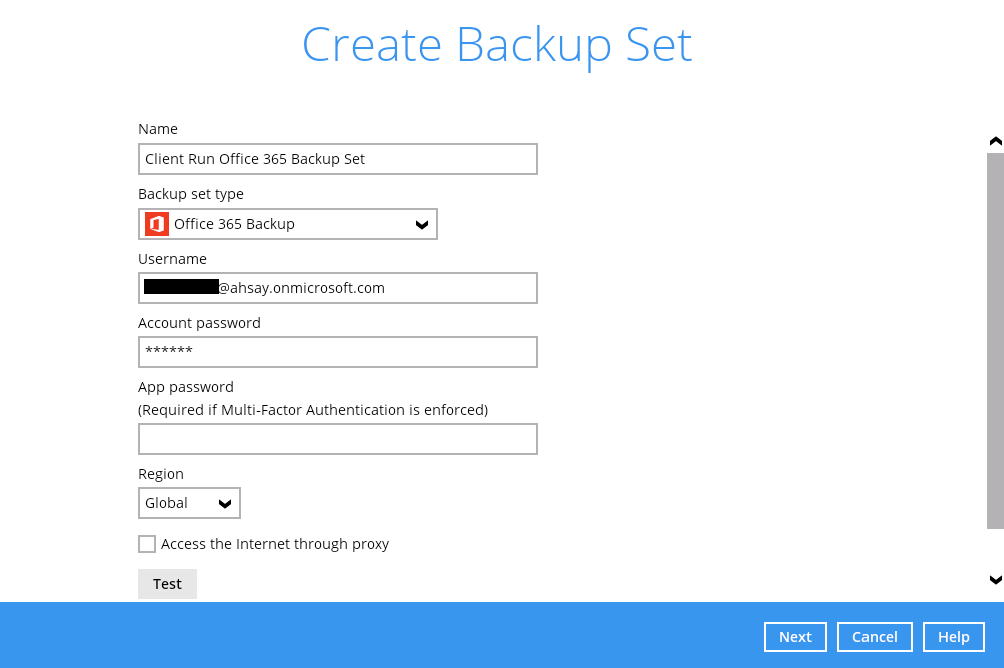 3.2. Creating an Office 365 Backup Set with Hybrid Authentication