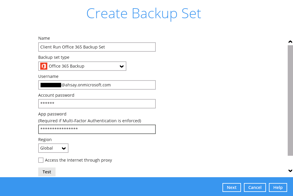 3.2. Creating an Office 365 Backup Set with Hybrid Authentication