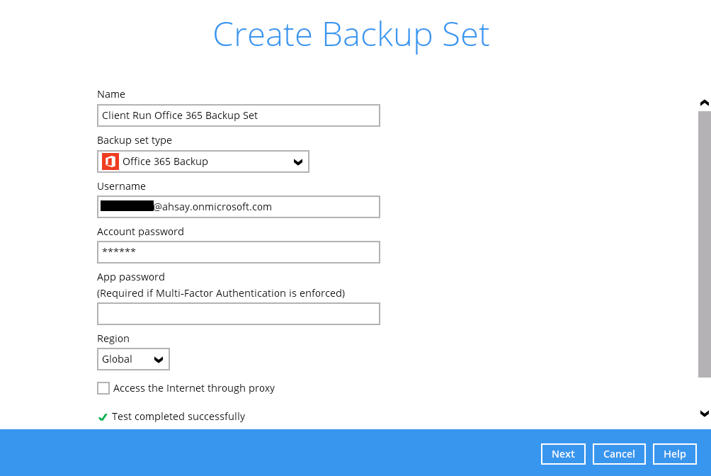 3.2. Creating an Office 365 Backup Set with Hybrid Authentication