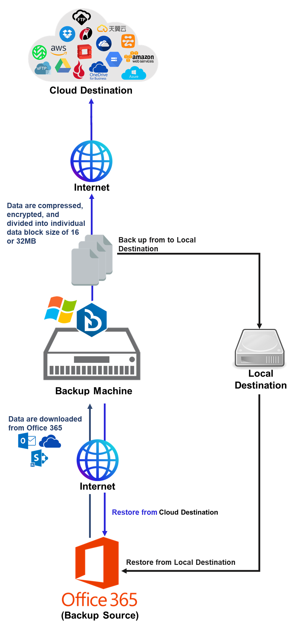 Office 365 SharePoint, Exchange, OneDrive Backup Module for CloudBacko Pro