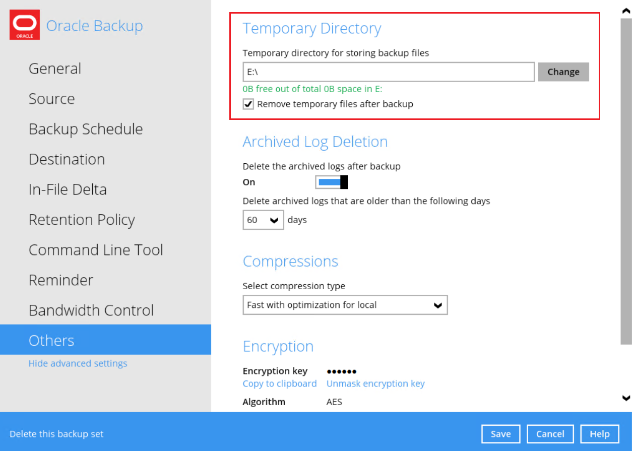 - Creating an Oracle Database Backup Set