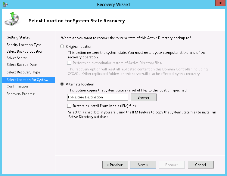 Apply the System State Data to Windows Server 2008 or Newer Releases