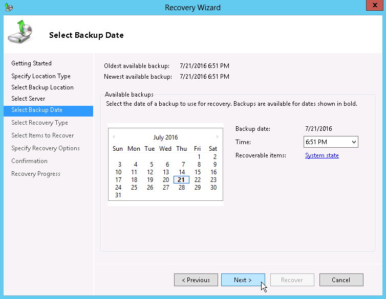 Apply the System State Data to Windows Server 2008 or Newer Releases