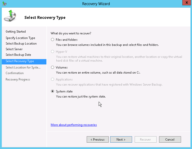 Apply the System State Data to Windows Server 2008 or Newer Releases